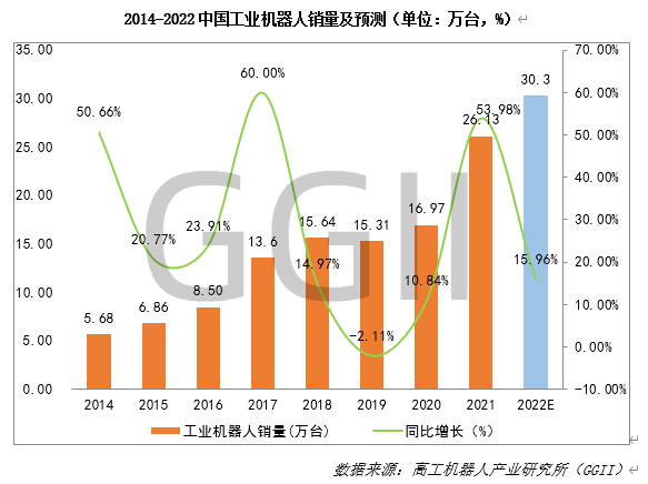 2022 年,疫情第三年,也是機(jī)器人行業(yè)的大拐點(diǎn)之年,由 2021 年的高增長(zhǎng)轉(zhuǎn)向 2022 年的低增長(zhǎng)